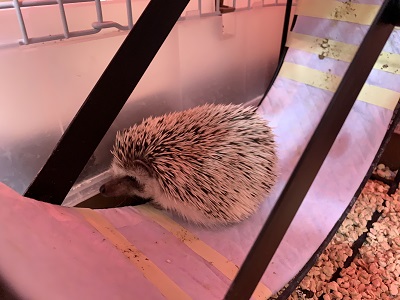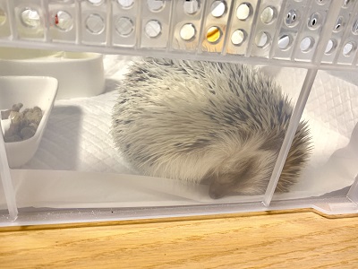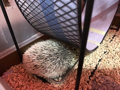起きた頃合いを見計らって、ハリネズミケージの掃除を開始。