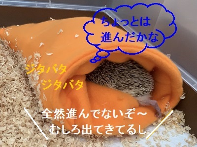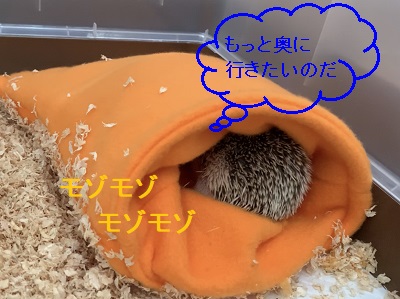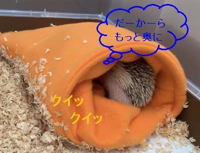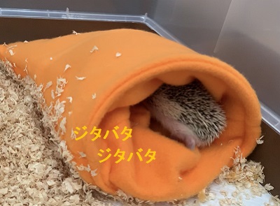 ケージに入れるとすぐに寝袋に入ったけど、