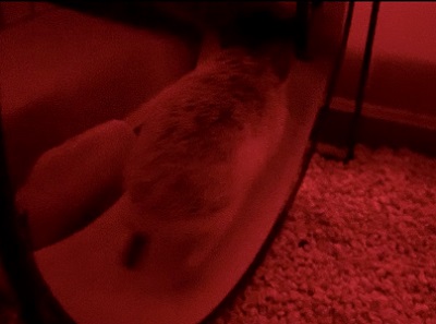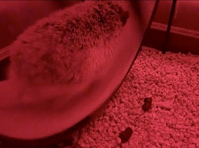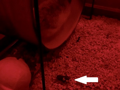 昼 ケージ内消毒、レイアウト変更 サイレントホイール(21cm)から メタルサイレント(32cm)に変更 巣を撤去、タオルを入れる 爪切り (丸まって大変なため左の親指1本のみ) 餌のカルシウム添加をやめてみる。 |