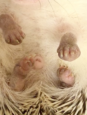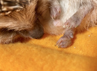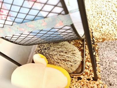 最近、ようやく足を見せてくれるようになったハリネズミの満福丸。