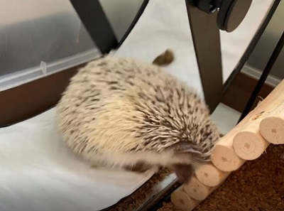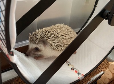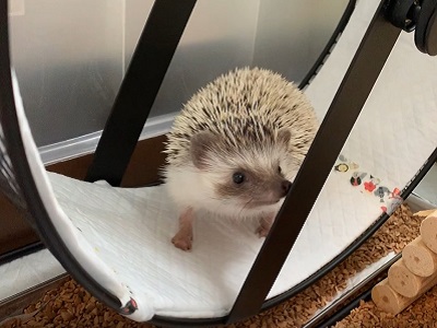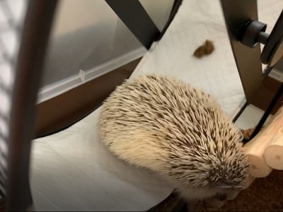 (現在は、有機ふすまを床材に、餌はハリネズミの餌(フェイ)、