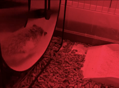 現在は200gを超えて針もしっかりしてきたので、回し車を設置しました。