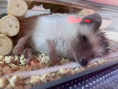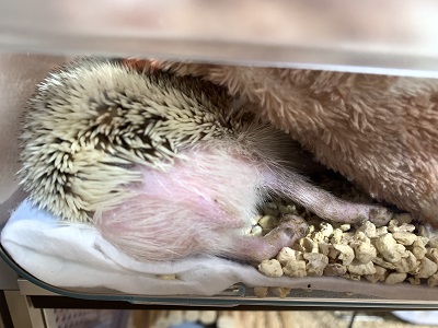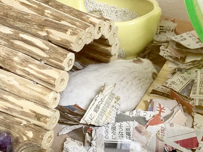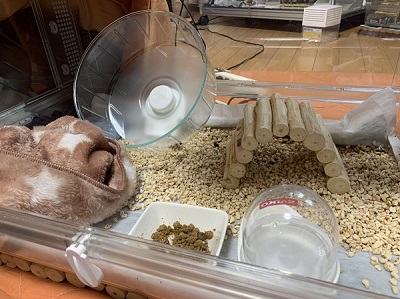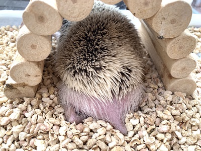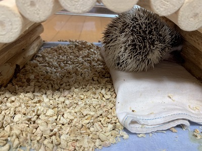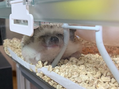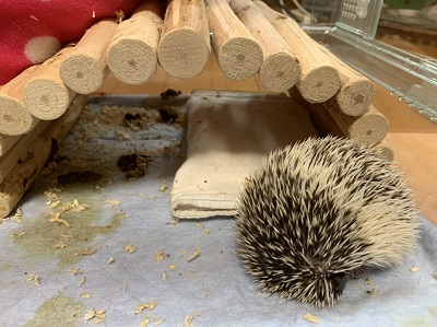新しいケージを作ってもらっている最中のハリネズミのちく姫。