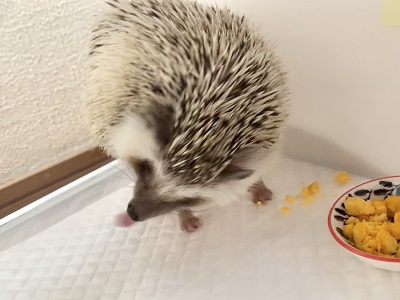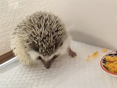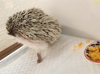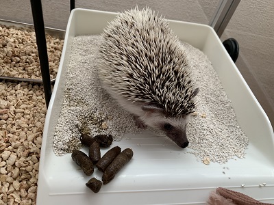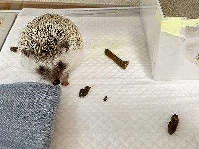 ハリネズミは代謝が低いので、モリモリ食べてモリモリ出します。